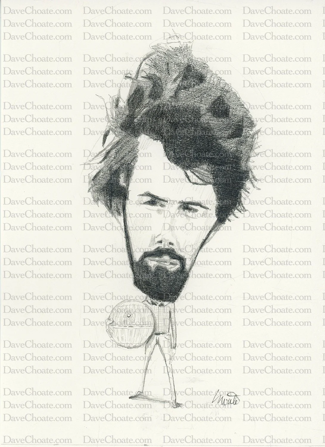 Star Wars, George Lucas original pencil drawing. Measures 6 x 8 inches